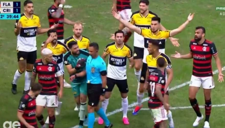 Όλα ξεκίνησαν όταν ο επιθετικός της Φλαμένγκο μπήκε στην περιοχή για να εκτελέσει, ωστόσο ο αμυνόμενος ποδοσφαιριστής της Κρισιούμα είδε στο διάβα του μία δεύτερη μπάλα την οποία κλώτσησε με τον ρέφερι της αναμέτρησης να καταλογίζει την εσχάτη των ποινών!