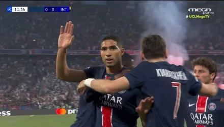 Ο Βιτίνια πέρασε κάθετη πάσα στην μεγάλη περιοχή και ο Ντουέ βρήκε τον Χακίμι στο ύψος της μικρής περιοχής, με τον Μαροκινό να στέλνει την μπάλα στα δίχτυα και να βάζει σε θέση ισχύος την ομάδα του στο 12ο λεπτό.