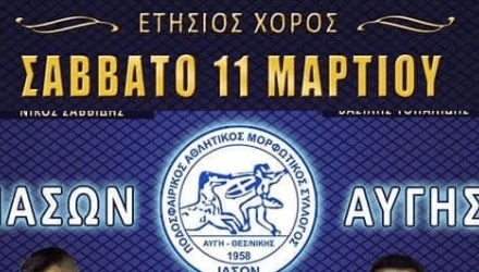 Ο ετήσιος χορός του ποδοσφαιρικού αθλητικού μορφωτικού συλλόγου «ΙΑΣΩΝ ΑΥΓΗΣ» θα γίνει το Σάββατο και ο σύλλογος αναφέρει:
