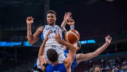 Ο Γιάννης Αντετοκούνμπο ξεκίνησε εξαιρετικά την αναμέτρηση, σημειώνοντας τους 13 από τους 28 πόντους Ελλάδας, η οποία έκλεισε την πρώτη περίοδο στο +6 (28-22).