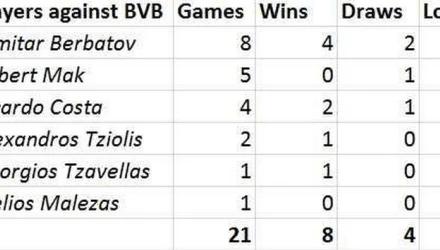 Αλλά δεν είναι ο μόνος παίκτης του ΠΑΟΚ που έχει αντιμετωπίσει κατά το παρελθόν τη Ντόρτμουντ. Ακολουθεί ο Ρόμπερτ Μακ, ο οποίος με τη φανέλα της Νυρεμβέργη αντιμετώπισε πέντε φορές τους «κιτρινόμαυρους» και έφυγε τέσσερις φορές ηττημένος, στη συνέχεια ο Ρικάρντο Κόστα με θητεία στη Βόλφσμπουργκ είχε απολογισμό 2 νίκες, 1 ήττα, 1 ισοπαλία κόντρα στους Βεστφαλούς, ο Αλέξανδρος Τζιόλης, ο οποίος αγωνίστηκε στη Βέρντερ Βρέμης και γεύτηκε μια φορά τη χαρά της νίκης ενώ οι δύο τελευταίοι που ήρθαν κόντρα με την ομάδα του Ρουρ ήταν οι Γιώργος Τζαβέλλας (Άιντραχτ Φρανκφούρτης) και Στέλιος Μαλεζάς (Φορτούνα Ντίσελντορφ).