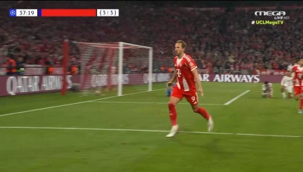 Σε μία φάση διαρκείας στα καρέ της Ρεάλ, ο Ουπαμεκανό βρήκε τον Κέιν και ο τελευταίος με τρομερό τελείωμα έστειλε την μπάλα στα δίχτυα, γράφοντας το 2-2 στο 38΄.