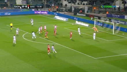 Ο ΠΑΟΚ στο δεύτερο ημίχρονο έχει μπει καλύτερα και στο 74ο λεπτό του αγώνα απείλησε με τον Μπίσεσβαρ να σουτάρει από το όριο της μεγάλης περιοχής, αλλά είδε την μπάλα να περνάει δίπλα από το δεξί δοκάρι της εστίας του Ολυμπιακού.