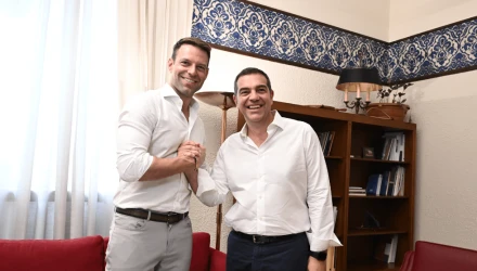 Σε θερμό κλίμα πραγματοποιήθηκε το μεσημέρι της Δευτέρας (25/9) η συνάντηση του Αλέξη Τσίπρα με τον Στέφανο Κασσελάκη στη Βουλή. Ο πρώην πρωθυπουργός υποδέχθηκε στο γραφείο του τον νέο πρόεδρο του ΣΥΡΙΖΑ, στον οποίο έδωσε τα θερμά του συγχαρητήρια, αλλά και συμβουλές.