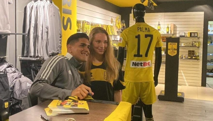 Ο Λουίς Πάλμας βρέθηκε σήμερα στη μπουτίκ του Άρη και συναντήθηκε με μικρούς και μεγάλους φίλους της ομάδας, οι οποίοι έσπευσαν να φωτογραφηθούν μαζί του και ορισμένοι ζήτησαν και αυτόγραφο από τον ποδοσφαιριστή των "κίτρινων", οποίος διανύει φέτος της δεύτερη σεζόν του με την κιτρινόμαυρη φανέλα.