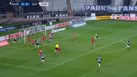Πολύ κοντά στο 1-0 έφτασε ο ΠΑΟΚ, απειλώντας πρώτος τον Ολυμπιακό στο ντέρμπι, με τον Σβαμπ στην ατομική ενέργεια να ξεπερνά τον Σεμέδο στο 2' και να «σπάει» την μπάλα στον Μουργκ, το σουτ του οποίου όμως, από καλό σημείο, πέρασε άουτ από την εστία του Σα.