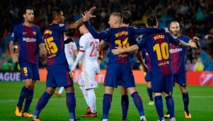 Η Μπάρτσα είχε δοκάρι στο 24' με τον Παουλίνιο, ενώ στο 33' ο Προτό απέκρουσε σε μοναδικό τετ α τετ με τον Σουάρες. Στο 42' οι γηπεδούχοι έμειναν με παίκτη λιγότερο λόγω της αποβολής του Πικέ που είδε τη δεύτερη κίτρινη καθώς έσπρωξε την μπάλα στα δίχτυα με το χέρι. Ετσι, οι Καταλανοί έμειναν με δέκα για το υπόλοιπο ματς. Ο Ολυμπιακός άρχισ ενα... ξεθαρρεύει, αλλά ήρθε το δεύτερο γκολ της Μπαρτσελόνα με απευθείας φάουλ του Μέσι στο 61', ενώ στο 54' με διαγώνιο σουτ του Ντιν έγινε και το 3-0.