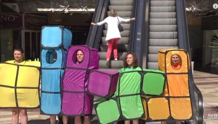 Αυτη τη φορά, ο Γάλλος φαρσέρ μαζί με τους «συνεργούς» του ντύνονται… τουβλάκια του Tetris και είτε σχηματίζουν απροσπέλαστους για ανθρώπους ή αυτοκίνητα τοίχους, είτε κολλάνε σε οτιδήποτε μπορεί να φανταστεί κανείς.