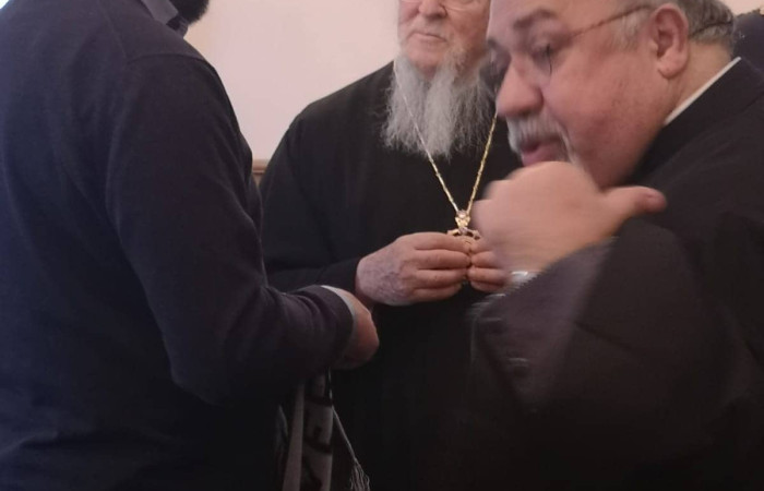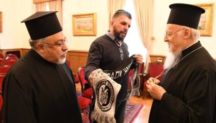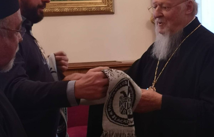 Στη συνέχεια ο Δημήτρης Χατζόγλου ζήτησε να δώσει δώρο ένα κασκόλ του ΠΑΟΚ στον Παναγιώτατο. Εκείνος το δέχθηκε με μεγάλη χαρά, ρώτησε τον Δημήτρη από που είναι, ο Δημήτρης είπε στον Πατριάρχη πως ζήτησε να του δώσει το κασκόλ γιατί πριν 94 χρόνια κάποιοι Κωνσταντινουπολίτες έχτισαν μια ομάδα στην Θεσσαλονίκη για να τους θυμίζει την Πόλη, και πως αυτή την ιδέα μεταδίδουν ως σύνδεσμος στην Γερμανία και αυτή η ομάδα είναι τώρα πρωταθλήτρια. Ο Πατριάρχης του είπε πως θα βγει φωτογραφίες με το κασκόλ μαζί τους.