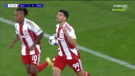 Ο Ολυμπιακός ξαναμπαίνει στο ματς με τον Ταρέμι στο 52΄. Ο Μαρτίνς από δεξιά άφησε στον Έσε, που έβγαλε τη σέντρα από τη δεξιά και ο Ιρανός με τρομερή κεφαλιά έστειλε την μπάλα στα δίχτυα, μειώνοντας σε 2-3.