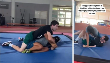 Μια ακόμη στιγμή μεταξύ Τεντόγλου και Καραλή βγήκε στο φως της δημοσιότητας, με τον Έλληνα πρωταθλητή του μήκους να υποδέχεται τον «Μανόλο», μετά την εντυπωσιακή του εμφάνιση στην Πολωνία, με λαβή... πάλης.