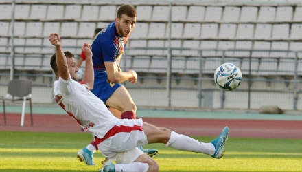 Το προβάδισμα στην ομάδα του Βόλου έδωσε στην εκπνοή του ημιχρόνου ο Μάριος Τσαούσης, που ανήκει στον «Δικέφαλο του Βορρά» και αγωνίζεται δανεικός στον ΝΠΣ Βόλου.