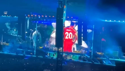 Μάλιστα, μετά από κάποιες μεγάλες επιτυχίες τους, στα ηχεία ακούστηκε το διαχρονικό «Live Forever», ενώ στις οθόνες εμφανίστηκε μια φωτογραφία του Ζότα, με σχεδόν 75.000 φανς του συγκροτήματος να ξεσπούν σε χειροκρότημα.