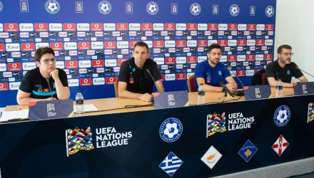 Με αυτοπεποίθηση για την συνέχεια αλλά προσγειωμένοι εμφανίστηκαν στην Συνέντευξη Τύπου πριν τον καθοριστικό αγώνα με το Κόσοβο (12/6 21:45) ο Ομοσπονδιακός Τεχνικός, Γκουστάβο Πογιέτ και ο εκπρόσωπος τον παικτών, Τάσος Μπακασέτας.
