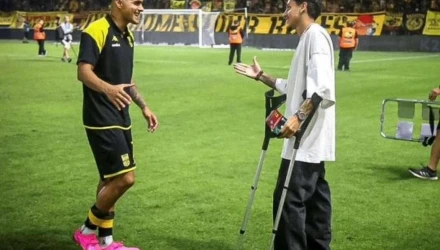 Ο παίκτης από το Εκουαδόρ, ωστόσο βρέθηκε χθες στο γήπεδο για να παρακολουθήσει από κοντά την προσπάθεια της ομάδας του, κάνοντας την εμφάνισή του με τις πατερίτσες.