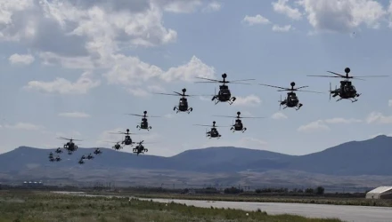 H εικόνα κόβει την «ανάσα» και προκαλεί δέος. Συνολικά 22 ελικόπτερα της 1ης Ταξιαρχίας Αεροπορίας Στρατού, Apache και Kiowa, απογειώνονται ταυτόχρονα από τη «φωλιά» τους στο Στεφανοβίκειο Μαγνησίας. Ο ουρανός για λίγα λεπτά μαυρίζει και η ήλιος κρύβεται.Ο ήχος των κινητήρων τους εκκωφαντικός. Το σμήνος μάχης μέσα σε ελάχιστο χρόνο εγκαταλείπει τη Βάση για να αναλάβει μια ακόμη εκπαιδευτική αποστολή.