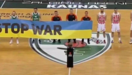 Serbian players were not holding the 'Stop The War' banner during Zalgiris v Crvena Zvezda.
