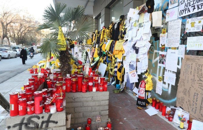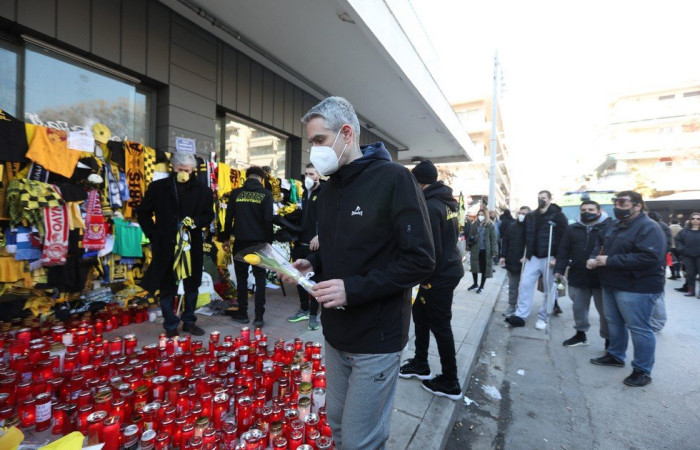 Με τη θλίψη ζωγραφισμένη και ένα «γιατί» αποτυπωμένο στα πρόσωπά τους, τα μέλη του Αρη μετέβησαν στο σημείο όπου τα ξημερώματα της Τρίτης 01/02 δολοφονήθηκε ο Άλκης Καμπανός.