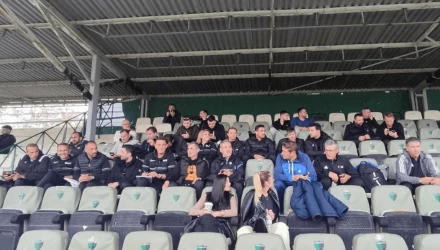 Μαζι τους στις εξέδρες του Μακεδονικού βρίσκονται οι Ιορδανίδης, Βονόρτας και Τσάνας που είναι οι προπονητές τους στο τελευταίο στάδιο του Uefa Pro.