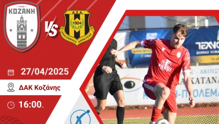 Η Διοίκηση του Φ.Σ Κοζάνη καλεί τον φίλαθλο κόσμο της πόλης να δώσει δυναμικό παρών την Κυριακή 27 Απριλίου, στο ΔΑΚ Κοζάνης στον κρίσιμο αγώνα της ομάδας με την Αναγέννηση Καρδίτσας.