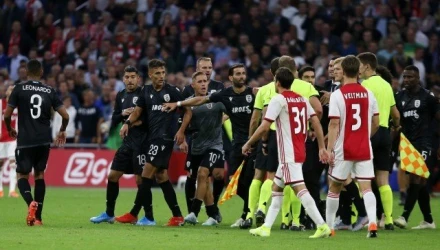Ο Πόουσον έδωσε τρία πέναλτι στον Άγιαξ για να προκριθεί κι αυτό είχε ως αποτέλεσμα με τη λήξη της αναμέτρησης όλος ο πάγκος του Δικεφάλου να μπει στον αγωνιστκό χώρο και να διαμαρτυρηθεί έντονα για τις υποδείξεις του.