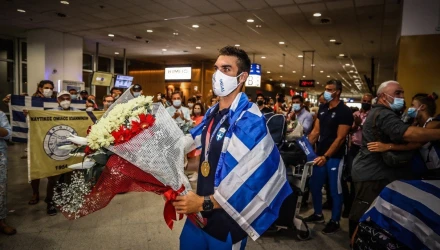 Στην Αθήνα έφτασε ο χρυσός Ολυμπιονίκης Στέφανος Ντούσκος μαζί με την υπόλοιποι ομάδα της κωπηλασίας.