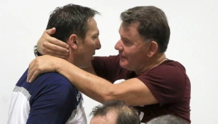 Μπορεί ο Αλέξης Κούγιας να είναι ακόμα τρελαμένος από το λάθος του Ντεγκρά, όμως στη συνέντευξη Τύπου με το που είδε τον Νίκο Παπαδόπουλο, έσπευσε να τον αγκαλιάσει και να έχει ένα συντομό τετ α τετ μαζί του.