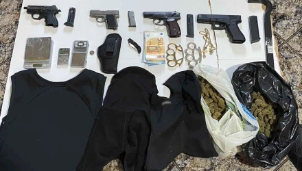Παράλληλα, βρέθηκε κυριολεκτικά ένα ολόκληρο οπλοστάσιο, ποσότητες ναρκωτικών ουσιών και μεγάλα χρηματικά ποσά.