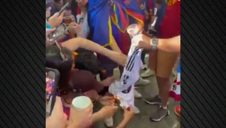 Την ίδια στιγμή, σε άλλο βίντεο που βλέπει το φως της δημοσιότητας εμφανίζονται οπαδοί της Μπαρτσελόνα να κρατούν στα χέρια τους φανέλα του Κιλιάν Εμπαπέ, την οποία στη συνέχεια βάζουν φωτιά.