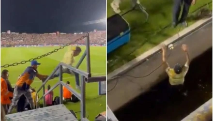 Ένας οπαδός της Αμέρικα μετάνιωσε πολύ πικρά την απόφασή του να επιχειρήσει να εισβάλει στον αγωνιστικό χώρο, καθώς κατέληξε να πέσει μέσα στην τάφρο του γηπέδου.