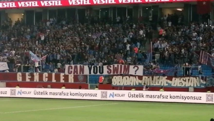 Μέσα από το πανό αυτό οι Τούρκοι οπαδοί χλεύασαν τα όσα συνέβησαν το 1922 στη Μικρασιατική καταστροφή, όταν έδιωξαν από την Τουρκία τους Έλληνες πρόσφυγες κι εκείνοι έπεφταν στη θάλασσα για να σωθούν.