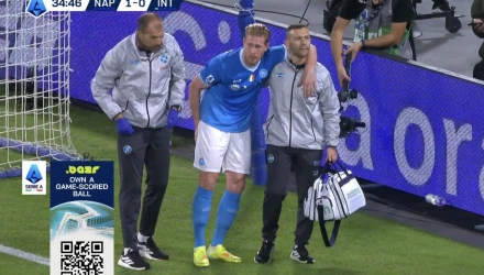 Ο Βέλγος μεσοεπιθετικός της Νάπολι άνοιξε το σκορ για τους «παρτενοπέι» στο ντέρμπι με τη... Νάπολι από την «άσπρη» βούλα, ωστόσο, δεν πρόλαβε καν να πανηγυρίσει. Αμέσως μετά την εκτέλεση του πέναλτι και αφού η μπάλα είχε καταλήξει στα δίχτυα της εστίας των «νερατζούρι» ο Ντε Μπρόινε άρχισε να πιάνει το οπίσθιο μέρος του δεξιού μηρού του, δείχνοντας να υποφέρει από έντονο πόνο.