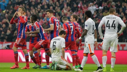 Με συνοπτικές διαδικασίες και παίζοντας με παίκτη παραπάνω σχεδόν με τη… σέντρα, η Μπάγερν Μονάχου διέλυσε (7-0) τη Σαχτάρ Ντόνετσκ και πήρε πανηγυρικά την πρόκριση στους «8» του Champions League, για 26η φορά στην ιστορία της και 4η συνεχόμενη!