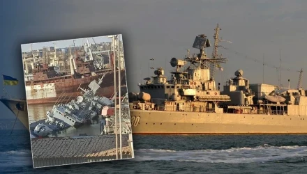Η ναυαρχίδα του ουκρανικού στόλου βρισκόταν υπό επισκευή στο λιμάνι του Μικολάιβ. Ωστόσο, βυθίστηκε μετά από εντολή του υπουργού Άμυνας Αλεξέι Ρέζνικοφ.