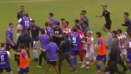 Αδιανόητο ξύλο σε αγώνα για το πρωτάθλημα Ουρουγουάης, όχι μεταξύ φιλάθλων αλλά μεταξύ ποδοσφαιριστών.
