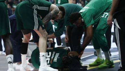 Στο δεύτερο μέρος της αναμέτρησης του Παναθηναϊκού με τη Μπασκόνια ο Ματίας Λεσόρ σηκώθηκε για να διεκδικήσει το ριμπάουντ και στην προσγείωσή του γύρισε το πόδι του και έπεσε στο έδαφος, σφαδάζοντας από τον πόνο.