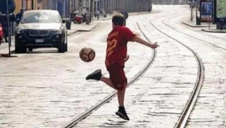 Η εικόνα άλλωστε είναι πανίσχυρη και στέλνει δεκάδες μηνύματα, με ένα παιδί που φοράει φανέλα της Ρόμα με το όνομα του Νικολό Τζανιόλο και το Νο 22 στην πλάτη να παίζει ποδόσφαιρο σε δρόμο του Μιλάνου που δεν υπάρχει ψυχή ελέω κορωνοϊού.