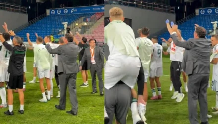 Μάλιστα, από τα πανηγύρια δεν έλειψε ούτε ο Πορτογάλος προπονητής, ο οποίος έγινε ένα με τους παίκτες του και τον κόσμο της ομάδας.