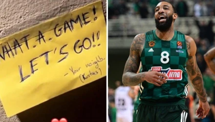 Καθοριστικός ήταν ο Ντέρικ Γουίλιαμς στη νίκη του Παναθηναϊκού κόντρα στην Βίρτους Μπολόνια με 88-85 για την 9η αγωνιστική της Euroleague. Ο Αμερικάνος έκανε μεγάλη εμφάνιση η οποία δεν πέρασε απαρατήρητη από τον Κώστα, έναν γείτονά του, που του άφησε σημείωμα στην πόρτα του σπιτιού του στην Εκάλη.
