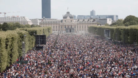 Το αδιαχώρητο επικρατεί στο μεγάλο πάρκο Champ de Mars, όπου δεκάδες χιλιάδες Γάλλοι θα παρακολουθήσουν από γιγαντοοθόνες τον μεγάλο τελικό των «τρικολόρ» απέναντι στην Κροατία.
