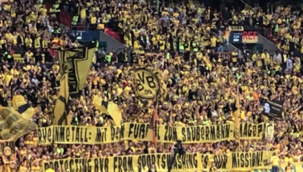 «Αποστολή μας να προστατεύσουμε την Μπορούσια Ντόρτμουντ από το αθλητικό ξέπλυμα», έγραφε το πανό που σηκώθηκε στις εξέδρες του Γουέμπλεϊ.