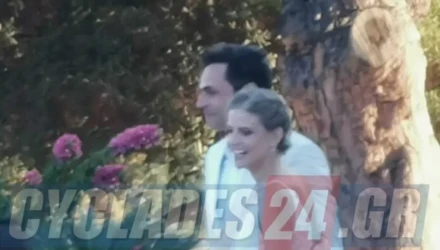 Τη νύφη παρέδωσε ο πατέρας και αδερφός της λίγα λεπτά πριν τις 7 στον γαμπρό. Στα λευκά ήταν ντυμένο το ερωτευμένο ζευγάρι, ενώ η νύφη επέλεξε μίνιμαλ εμφάνιση με διακριτικά κοσμήματα.