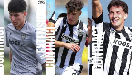 Όπως αναφέρει η σχετική ανακοίνωση, «Τρία ακόμα παιδιά του PAOK Academy υπέγραψαν τα πρώτα τους επαγγελματικά συμβόλαια. Η «τριπλέτα» που ανακοινώνουμε σήμερα είναι πλάγιοι αμυντικοί, ένας κάθε γενιάς…