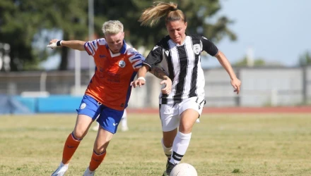 Οι «ασπρόμαυρες» άνοιξαν τον χορό των γκολ με την Εύα Βλασσόπουλος, η οποία στο 16ο λεπτό της αναμέτρησης εκμεταλλεύτηκε στο έπακρον την ασίστ της Καλέση και έβαλε σε θέση οδηγού την ομάδα του Λευτέρη Κανάτα.