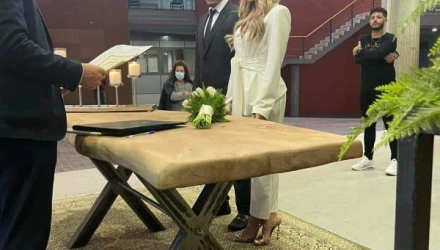 Το ζευγάρι ενώθηκε με τα δεσμά του γάμου στο Δημαρχείο Θεσσαλονίκης.