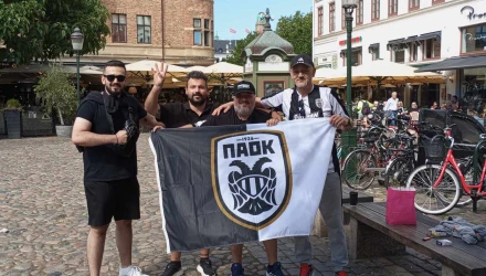 Οι πρώτοι οπαδοί του ΠΑΟΚ έχουν καταφθάσει και ήδη η παρουσία της έχει γίνει αισθητή στους γύρω δρόμους του Μάλμε. Διακριτική η παρουσία της σουηδικής αστυνομίας.