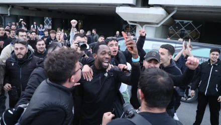 Οι παίκτες του ΠΑΟΚ γνώρισαν χθες (9/4) την αποθέωση στο Αεροδρόμιο «Μακεδονία» από περίπου 200 φίλους του Δικεφάλου οι οποίοι ενθουσιάστηκαν με την πρόκριση της ομάδας τους στους τελικούς του FIBA Europe Cup.
