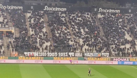 Οι φίλοι του "δικεφάλου" κρέμασαν και πανό, θυμίζοντας τα δυστυχήματα που έχουν συμβεί στα Τέμπη, γράφοντας: «Τέμπη1999-2003-2023 το αίμα μας τα κέρδη τους». Μάλιστα, πριν τη σέντρα, όπως σε κάθε αγώνα του ελληνικού πρωταθλήματος, κρατήθηκε ενός λεπτού σιγή, ενώ στα μάτριξ της Τούμπας αναγραφόταν η φράση: «Πάρε με όταν φτάσεις».