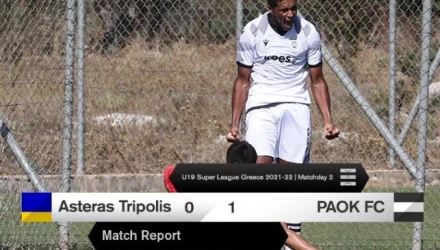 Με διπλό (0-1) στην Τρίπολη άρχισε την σεζόν η Κ19 του ΠΑΟΚ. Παρότι ο Αστέρας είναι σκληρός αντίπαλος, ο Δικέφαλος βρήκε τον τρόπο να απειλήσει αρκετές φορές την εστία του. Σε μία από τις αντεπιθέσεις, στο 31’, ο Σπυράκος έβγαλε την κάθετη πάσα και ο Bαρέλα με ωραία ενέργεια νίκησε τον τερματοφύλακα του Αστέρα κάνοντας το 1-0 για τον ΠΑΟΚ.