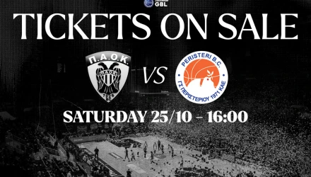 Η ΚΑΕ ΠΑΟΚ ανακοίνωσε την έναρξη της διάθεσης των εισιτηρίων για τον αγώνα με το Περιστέρι bwin, στο πλαίσιο της 4ης αγωνιστικής της κανονικής περιόδου της Stoiximan Basket League.